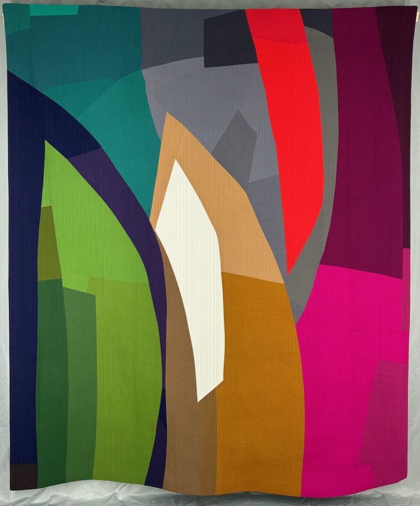 Her love of caves as a child influenced “Calcium Carbonate Structures 1,” and her science background helped her name it. “While I don’t intentionally represent ‘science’ topics in my quilts, I end up seeing somewhat nerdy or scientific things when I finish a piece,” Brown explained. “Luckily for everyone, I drew the line at (naming it with) the chemical structure.”