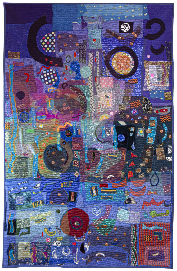 “I see my art process in the same way,” she continued. “As I layer the fabrics, it forces me to see beyond the surface to the layers below, and as I add and subtract fabrics the whole piece changes in a fluid way.”
