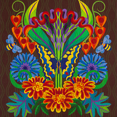 In this workshop, we will stylize some of your favorite characters in nature and arrange them into an interlacing appliquéd fabric collage, a colorful and graphic Totem of Life.