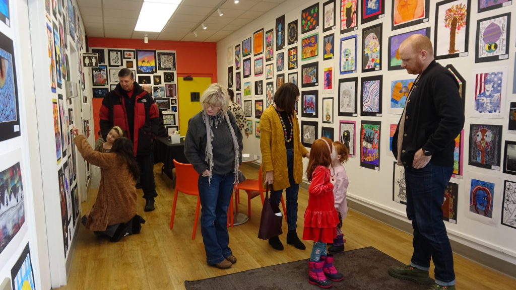 Cayuga-Onondaga BOCES’ Talented and Gifted Advisory Committee selected hundreds of artworks from students in their district to display in Gallery Julius at Schweinfurth Art Center. The pieces cover the walls from floor to ceiling in this annual exhibit.