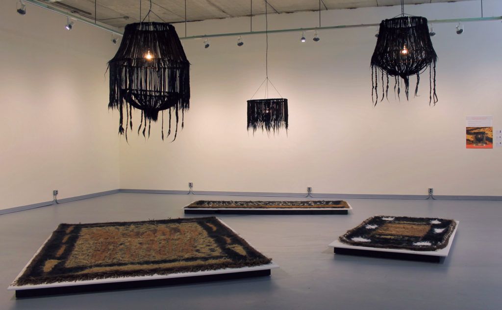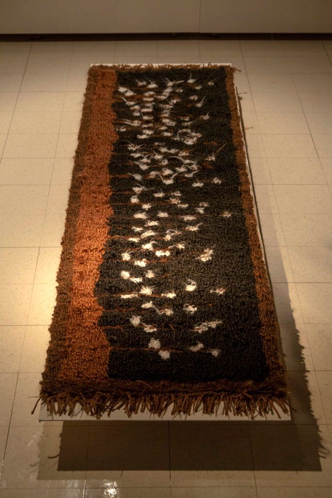 Hunter is a performance artist, but the performance in these pieces were behind the scenes as she hand-pulled each strand of the hair into place. “I knew this project was going to be hard on my body, but I didn’t know how hard it would be,” she said, adding that she had to get help to complete the project because of repetitive stress injury to her hands. “For me, it was important that it was hand-done. My own physical labor re-inscribed the labor into the place.”