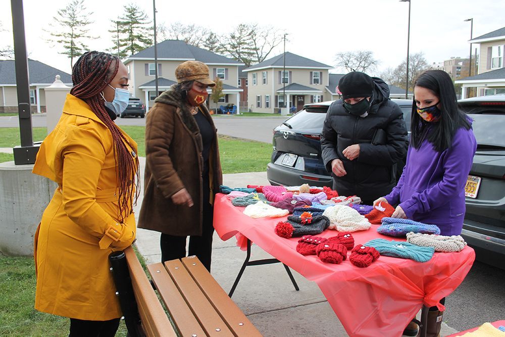 Johnson began her My Hands Warm Your Hearts – By Women, For Women outerwear giveaway in 2020 to bring a bit of cheer to people in need during the pandemic. As a transplant to Central New York, she was shocked by the need for warm hats and gloves.
