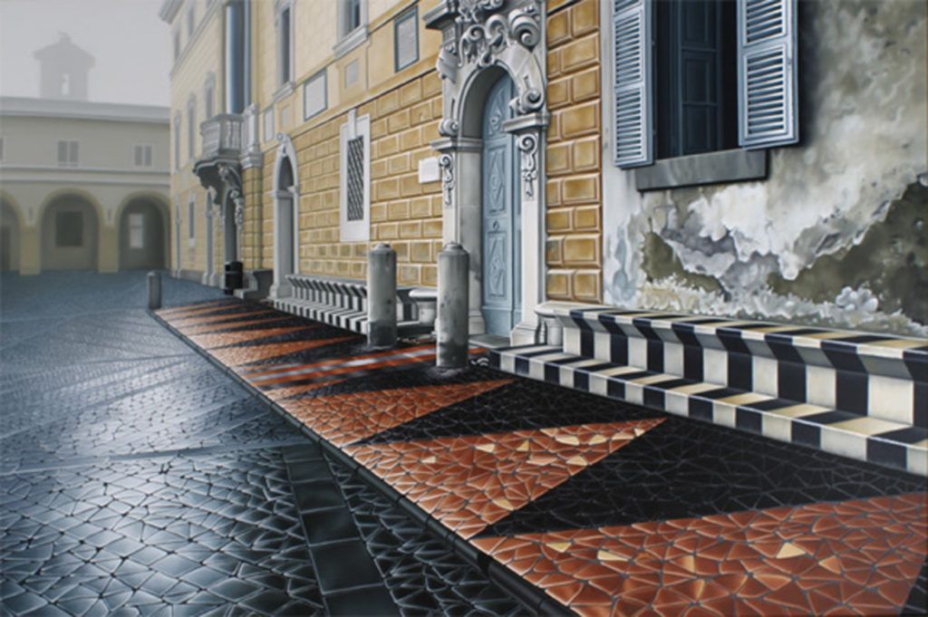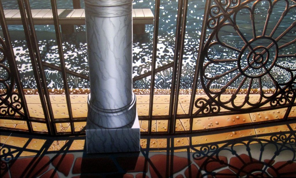 Several works in this show have purposeful evocations of a sense of movement in the midst of peace and solidity. Without deliberate collaboration, they have separately created mysterious, quiet, people-less paintings of man-made structures or nature touched by man, playing formal beauty against an eerie disquiet. The artists hope that these metaphysical symbols transcend global territories to touch all human spirit.