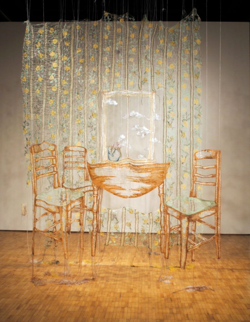 Through an exploration of line and its 2-d and 3-d implications, stitch is used in her artwork to explore various concepts such as connections to home, the fibers of the body and more formal considerations of thread’s accumulative presence. Amanda’s work explores embroidery’s duality: it’s subtle quality versus its accumulative presence and its structural possibilities versus its fragility. Through experimentation and creation within her studio, she continues to investigate line in the context of embroidery, drawing and installation.