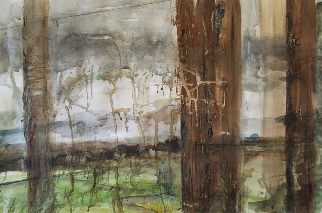 All but two of the pieces in the Schweinfurth are watercolors, a medium Plater chose for practical reasons because of the shorter drying time. “But I also took advantage of the emotive qualities of watercolor to emphasize the contradictions between a beautiful landscape and the terrors those landscapes held for, in this case, freedom seekers during the time of the Underground Railroad,” she said.