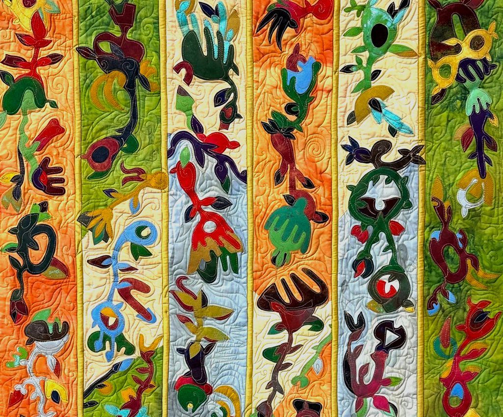 JOY! is a fiber/quilt exhibition by Ellen M. Blalock produced during her artist-in-residency at the Schweinfurth Art Center. This new work is about PLAY; about Blalock allowing herself to rediscover play. Blalock was working on healing that wonderful little girl deep down inside of her. But that child in turn nurtured the adult, and gave her permission to soar and have fun.