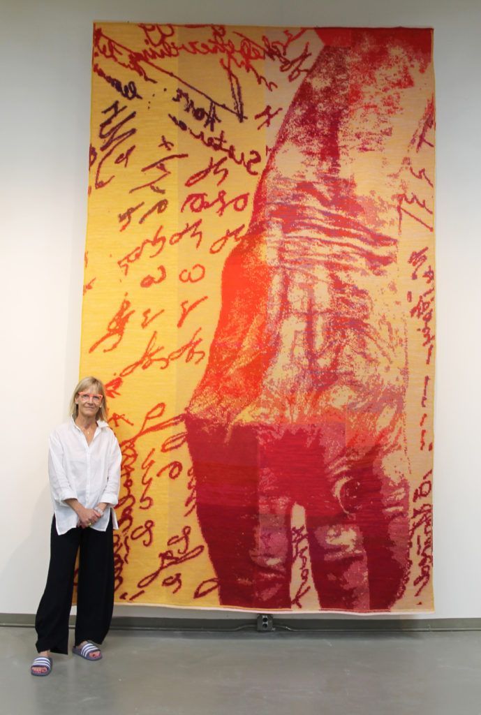Fiber artist Ann Clarke of Syracuse creates monumental rugs that are inspired by caring for her 100-year-old mother, who suffers from Alzheimer’s disease. Clarke is her sole source of support.