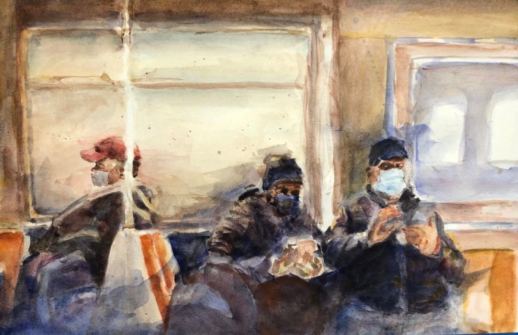 Their watercolor painting in “Made in NY 2025,” “Q Train,” captures a moment they experienced during COVID riding the Q subway train when New York City was collectively grappling with trauma.