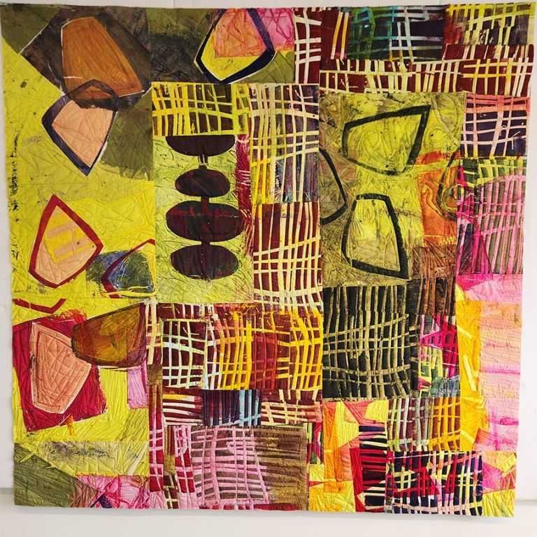 The exhibit Imprinted on Cloth showcases four fiber artists whose work crosses the boundaries between quilting and printmaking: Petra Fallaux, Pat Pauly, Karen Schulz, and Margaret Boys Wolf.
