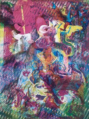 Durgee always incorporates pop culture icons in his artwork, even if they become obscured by digital manipulation or the colors he paints on top. He was inspired by Superflat, a Japanese style of art that incorporates compressed or flattened graphic design, pop culture, and fine arts images, and also is a comment on the emptiness of consumer culture.