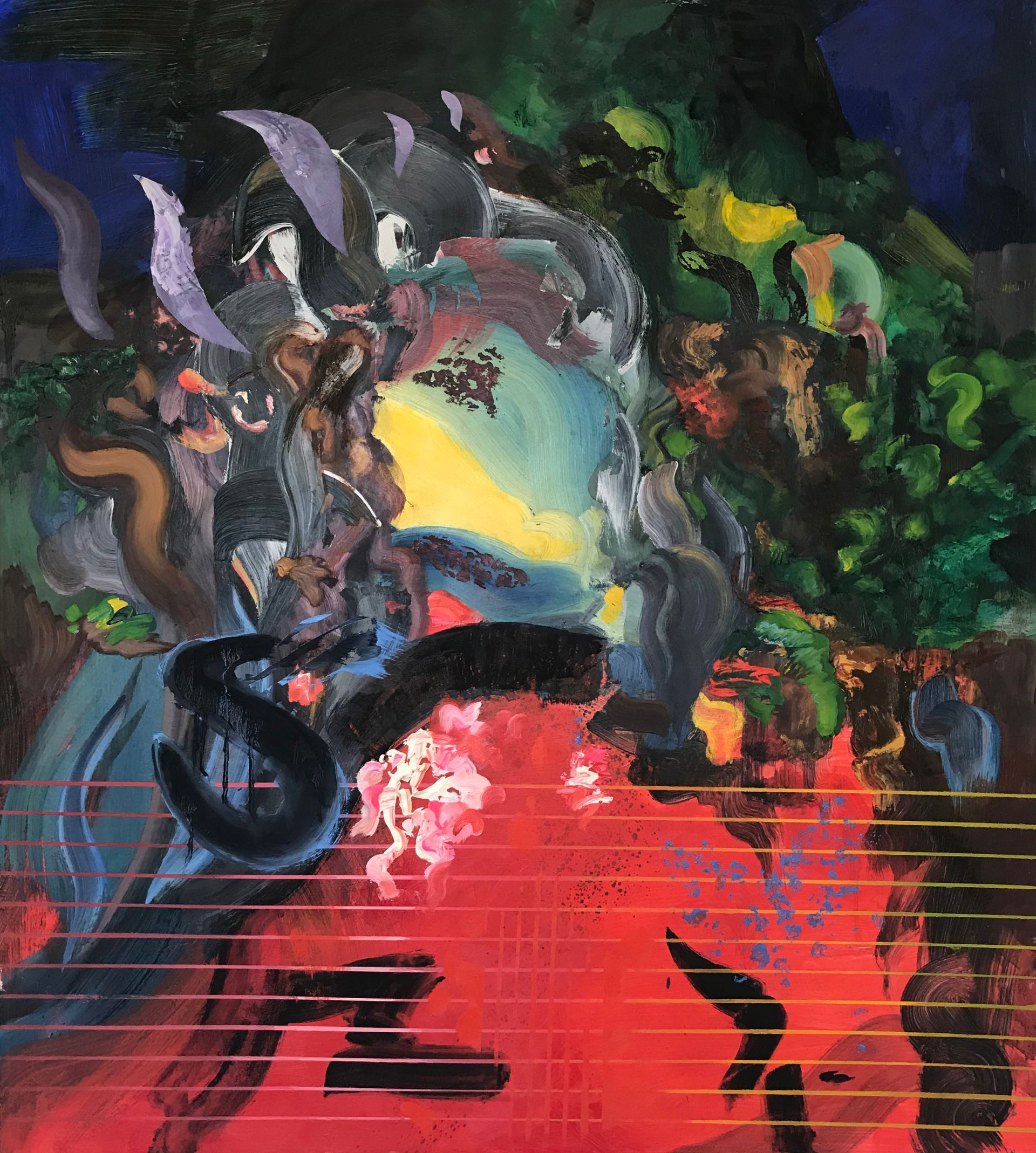 Ms. Pac-Man herself shares a similar sampling heritage. A group of dropouts from the Massachusetts Institute of Technology created the game as a hack of the Pac-Man arcade video game. Ultimately, Ms. Pac-Man grew more popular than her predecessor. Two of Durgee’s paintings take on new meaning after reading their titles: “The Illusion of Freedom” (below) and “Friends You Haven’t Seen Since 2017.” Both were finished and titled soon after Donald Trump was elected president. “I was surprised by how many people I knew personally who voted for Trump,” he said. “Whether it was a deliberate choice or not, I have removed them from my life. I don’t reach out to them much anymore.”