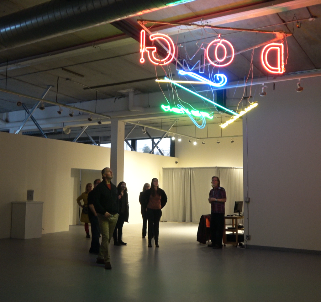 Covington decided that instead of learning to make new neon, he would salvage abandoned stashes and reuse them in a sculpture. “‘Recycled Light’ is the first such installation of salvaged neon, drawn from a collection of over 400 neon tubes in all shapes, colors, and many words and letters – many likely well over 50 years old,” he said.