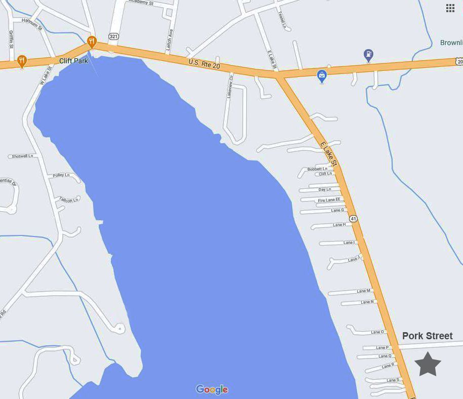 From Auburn, head east on Route 20 towards Skaneateles, turn right on East Lake Road, and continue until you reach Pork Street (259). The sculpture will be on the left, and there is a small gravel parking lot off of Pork Street.