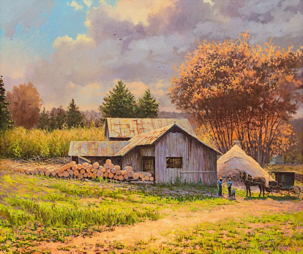 The landscapes depict familiar scenes: trees, meadows, farms and, yes, even snow. Many of the paintings are scenes from Williamstown, a rural town on the eastern edge of Oswego County that lies on the western side of the Tug Hill Plateau. Why there? Because in 2019, the couple purchased six acres of land so Mikushkin could have an uninterrupted location to paint.