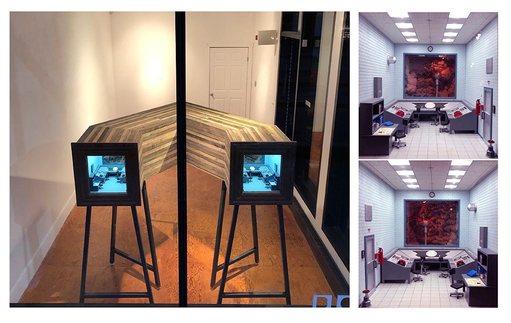 The sculptural works in this exhibition play with these perspectival collisions – drawing from a pop-cultural well of high strangeness which includes séance parlors, alien abductions, hypnogogic events, inter-dimensional ruptures, perceptual delusions, anomalous incursions, and imminent global perils. Many of these three-dimensional tableaus embody my infatuation for miniature architectural spaces- and include both manual & digitally augmented components. Each piece in this collection thrives upon certain prescribed atmospheric and perceptual conditions – as do the subjects that propagated them.