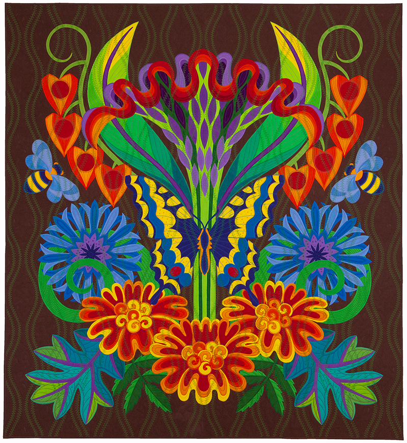 Come to class with a chosen theme to help organize your ideas. For example, you could pick autumn as your theme and your characters could be fall leaves, moths, chrysanthemums and a harvest moon. Or your theme could be butterflies and flowers, ocean life, or even the planets. Then you will collect photos and prints of the characters that are candidates for your composition. From these we will stylize (simplify and exaggerate) each object so they can be made as graphic fabric shapes for appliqué. Your composition will evolve as your shapes begin to “play off” one another.